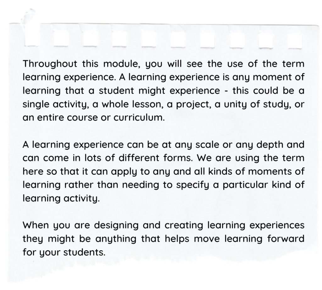 Designing effective learning experiences should consider these elements in order to provide a learning experience that suits the learners and their circumstances, as well as reach the desired learning goals and objectives.