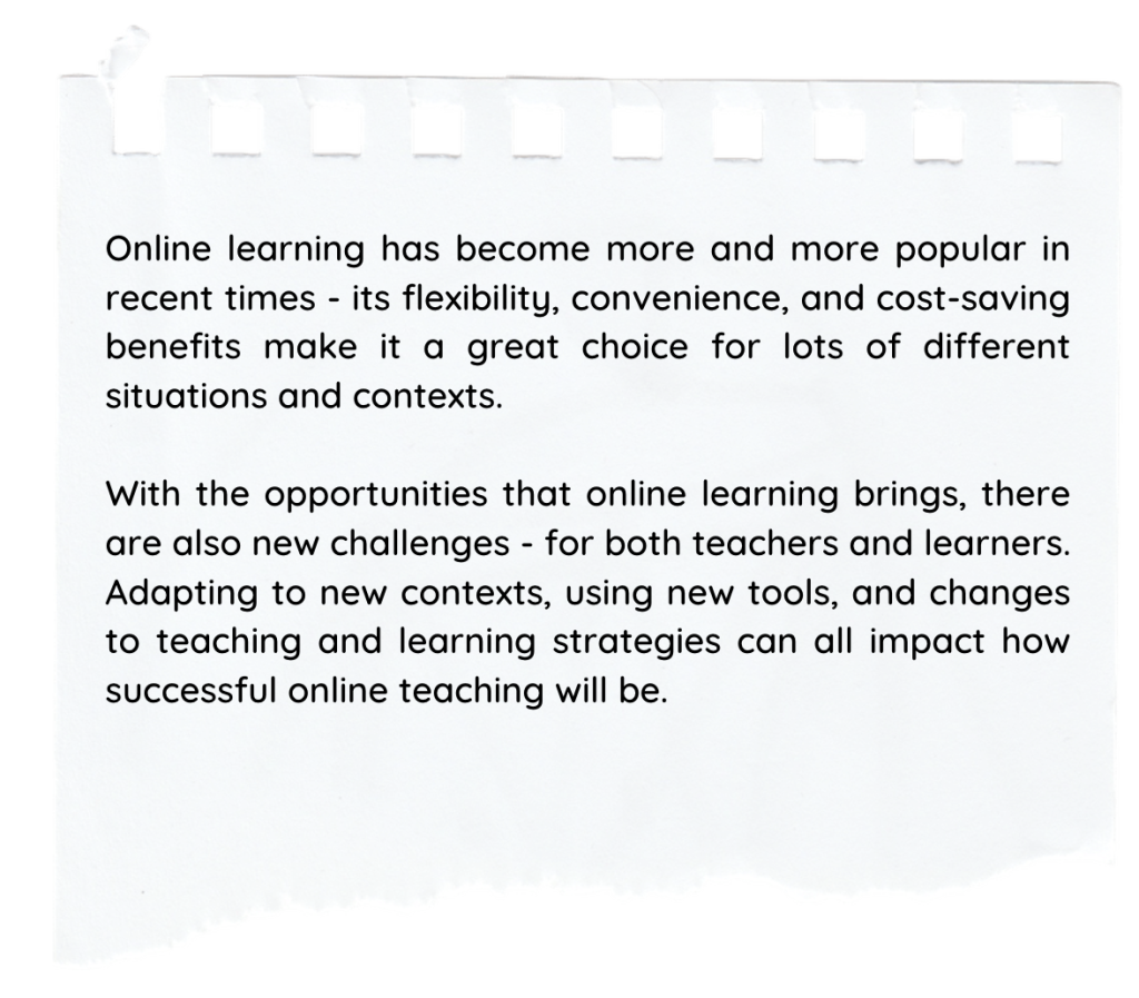 This module will give you an overview of instructional design for online learning. We’ll dive into topics like crafting instructional objectives, deciding on delivery methods, and making learning experiences more engaging. Additionally, effective assessment for learning will be the main focus of Module 5.